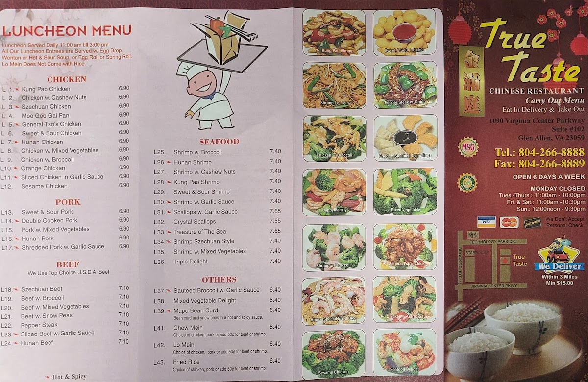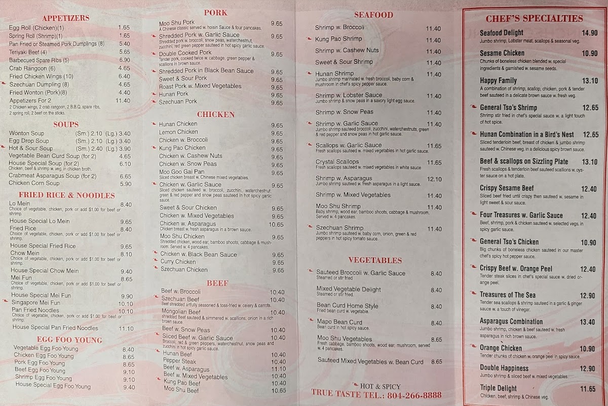 True Taste offers a straightforward and approachable Chinese menu that focuses on familiar favorites and comforting flavors. The selection combines casual bites and hearty dishes, making it a reliable choice for both quick takeout meals and relaxed dinners at home.